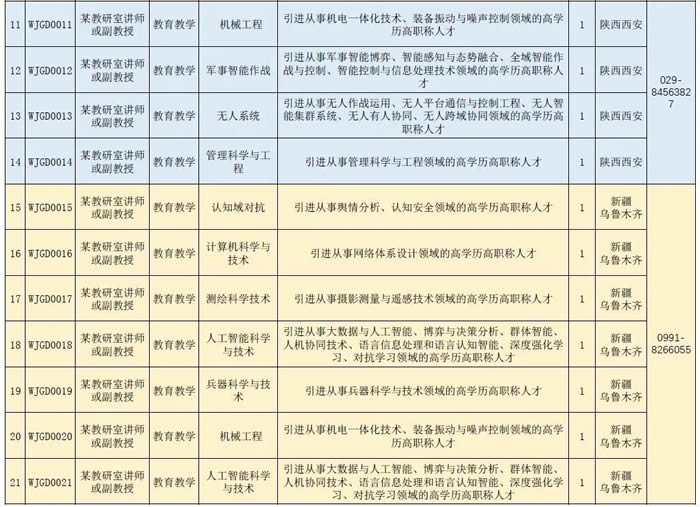 1.军队建设急需,“双一流”建设高校或者建设学科的理学、工学等学科门类毕业的博士毕业生。